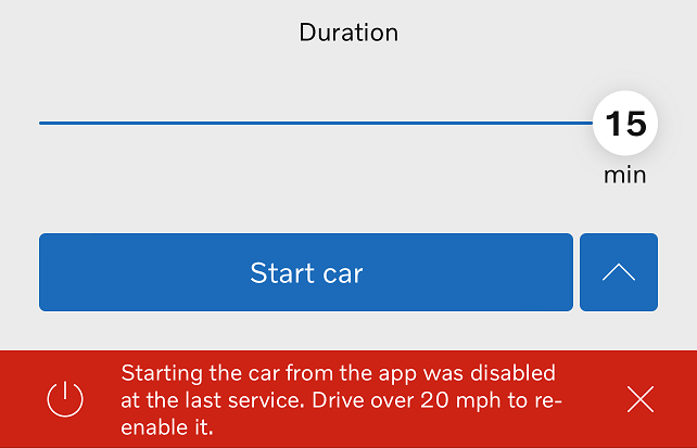 Сообщение в приложении выглядит так: Дистанционный запуск был отключен при последнем техобслуживании.