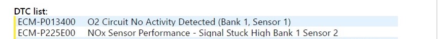 ECM-P225E00 NOx Sensor Performance - Signal Stuck High Bank 1 Sensor 2.