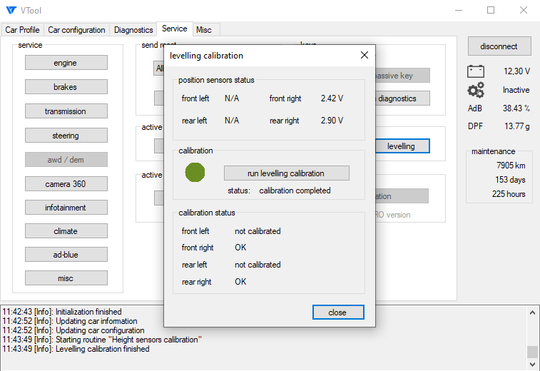 - Калибровка активной подвески (доступно только в коммерческой версии)