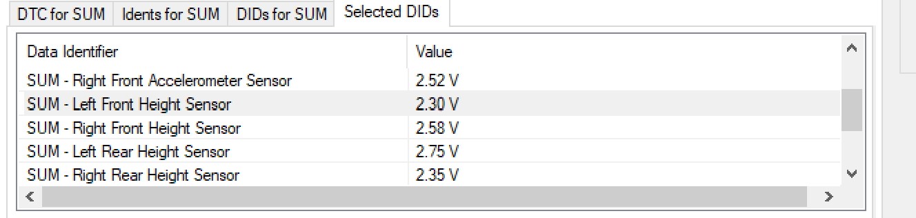 Можно начать с проверки напряжений датчиков высоты, в модуле SUM есть соответствующие Data Identifiers