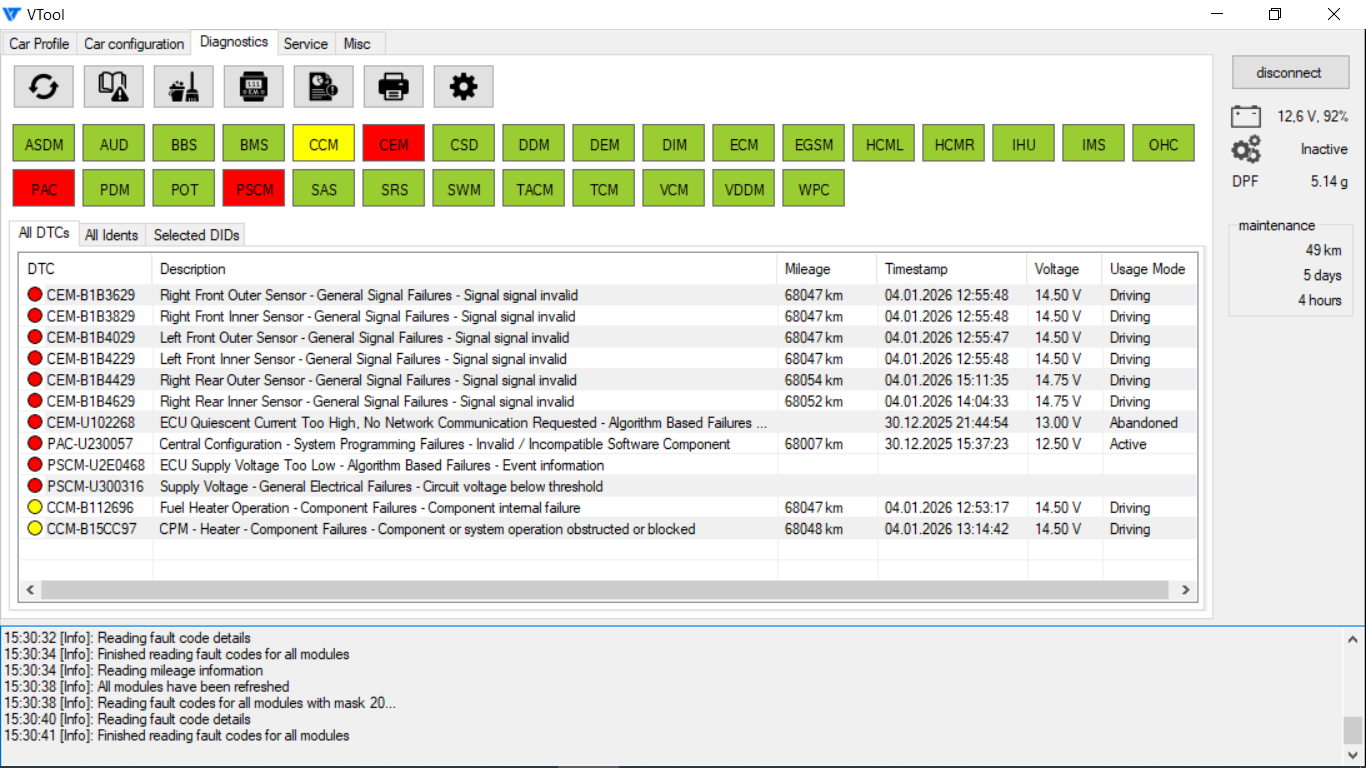 Вылезла куча ошибок. ошибки после 4 дней простоя в морозы -30 гр.